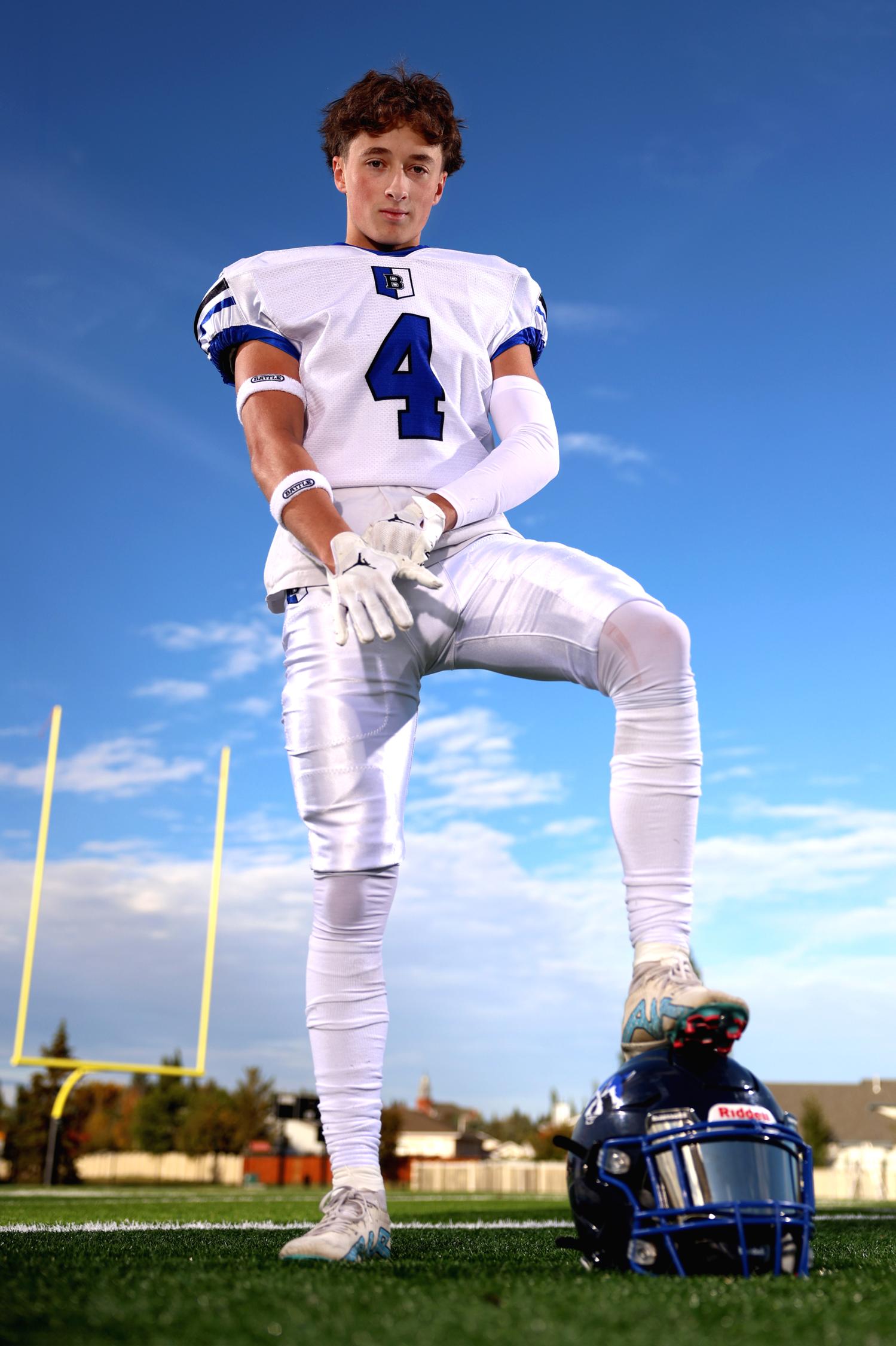 BEAUMONT, AB - September 28: Beaumont Composite High School student and Beaumont Bandits reciever Kaden Carwell as photographed on his home field in Beaumont on September 28, 2024. (Photo by James Maclennan)
